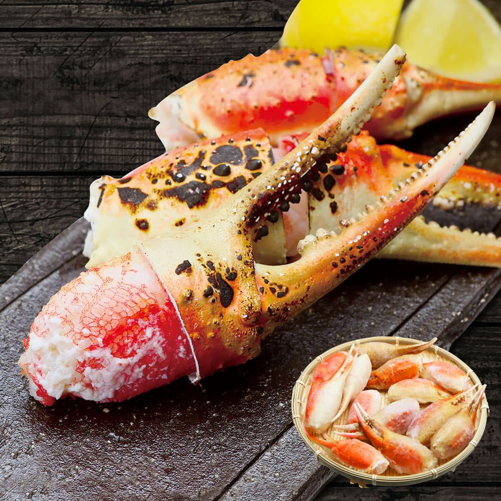 大きさは約10cm前後ある大型のカニ爪です。このサイズは流通量が比較的少ないため、ギフトとしても喜ばれます。面倒な下処理は不要で、解凍するだけ。焼きガニ、バターソテー、カニ雑炊、カニ鍋などでお楽しみください。