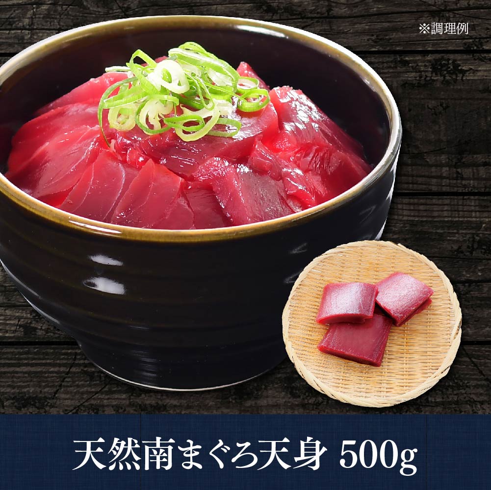 天身500g訳あり天然ミナミマグロ天身(てんみ)は、背骨の周りにある赤身部位で、筋が少なくモチモチとした食感が特長です。鉄火丼や手巻き寿司、酒の肴としてもお楽しみいただけます。 -
