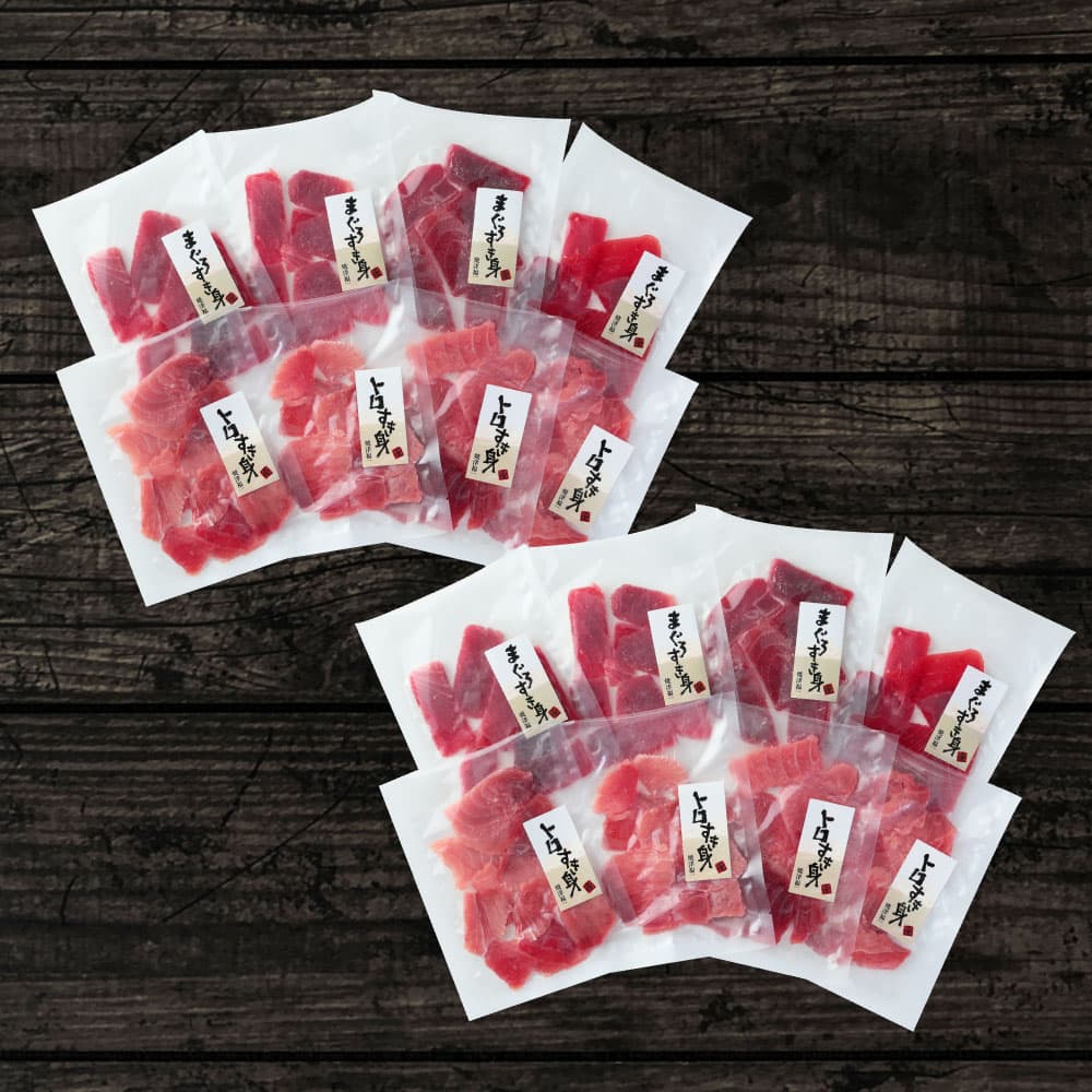 中トロと赤身の2種をまとめて楽しめる大容量セットです。ご家族でのお食事やお友達との集まりにもおすすめです。